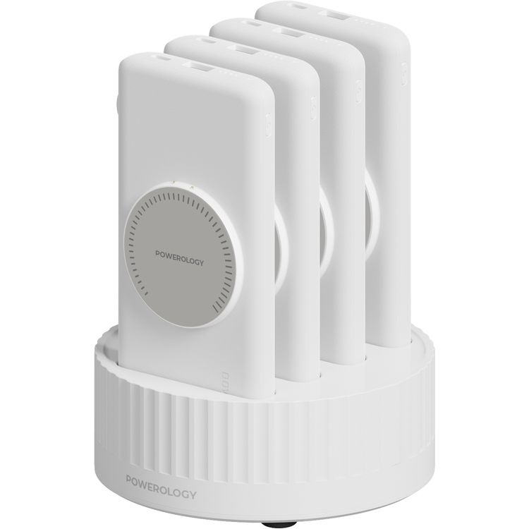 Powerology 4-in-1 Power Station with 10000mAh Battery Capacity, Built-In Cable, Rapid Re-Charging Station, 20W Power Delivery, 15W Wireless Output, Built-in Safeguards - White