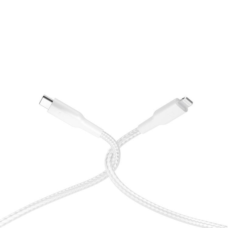 Powerology Braided USB-C to Lightning Cable with 60W Power Delivery, 2m Cable Length, Fast Data Transfer & Fast Charge, Universal Compatibility - White