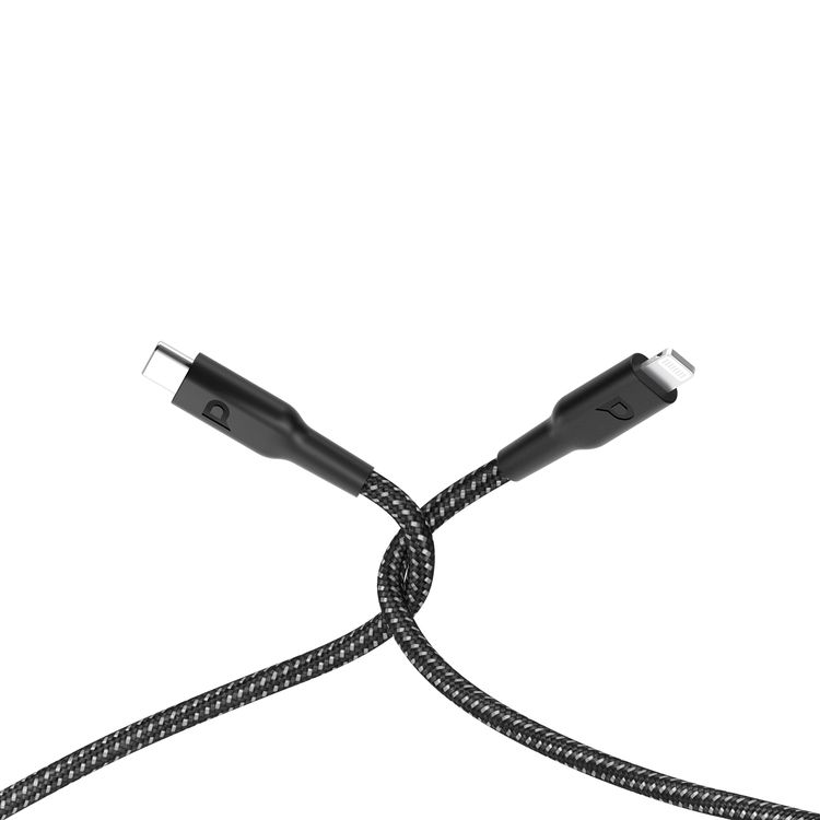 Powerology Braided USB-C to Lightning Cable with 60W Power Delivery, 2m Cable Length, Fast Data Transfer & Fast Charge, Universal Compatibility - Black
