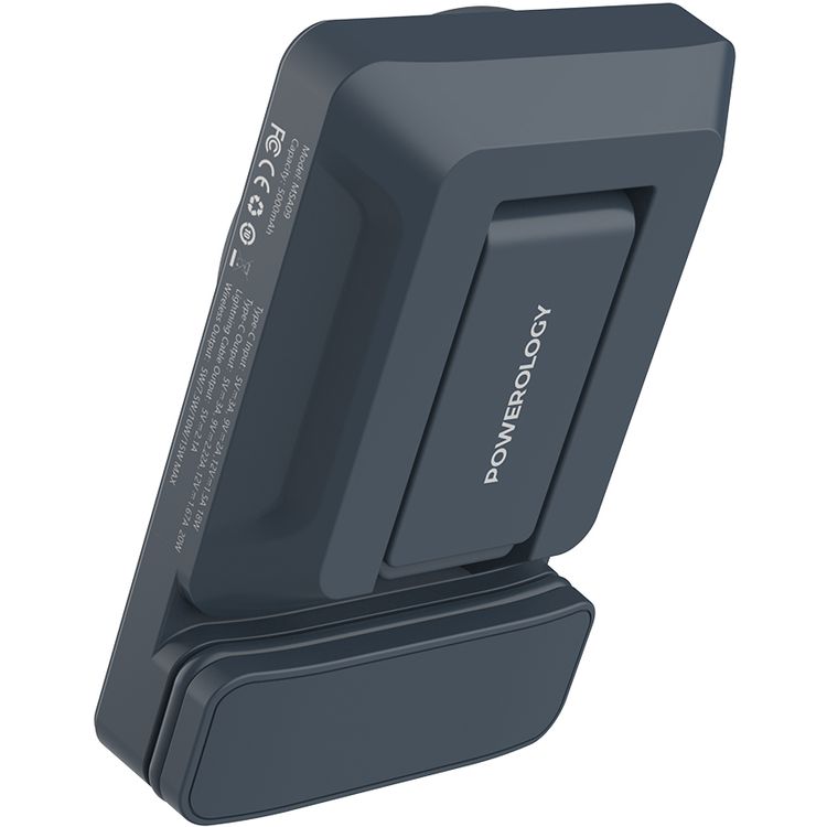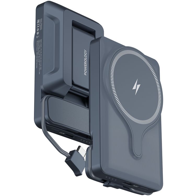 Powerology Car Mount 5000mAh Power Bank with Magnetic Wireless Charger, MagSafe Charging, PD 20W Fast Charge, Folding Air-Vent Clip, LED Indicator, Built-In Type-C Cable, Lightweight & Portable - Gray