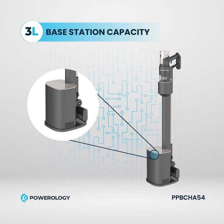 Powerology Cordless Vacuum with Auto-Disposal Charging, Fast Cleaning Up, Lightweight, Self-Cleaning, HEPA Filter, 3 Modes Speed Level, 45 Minutes Working Time - Black