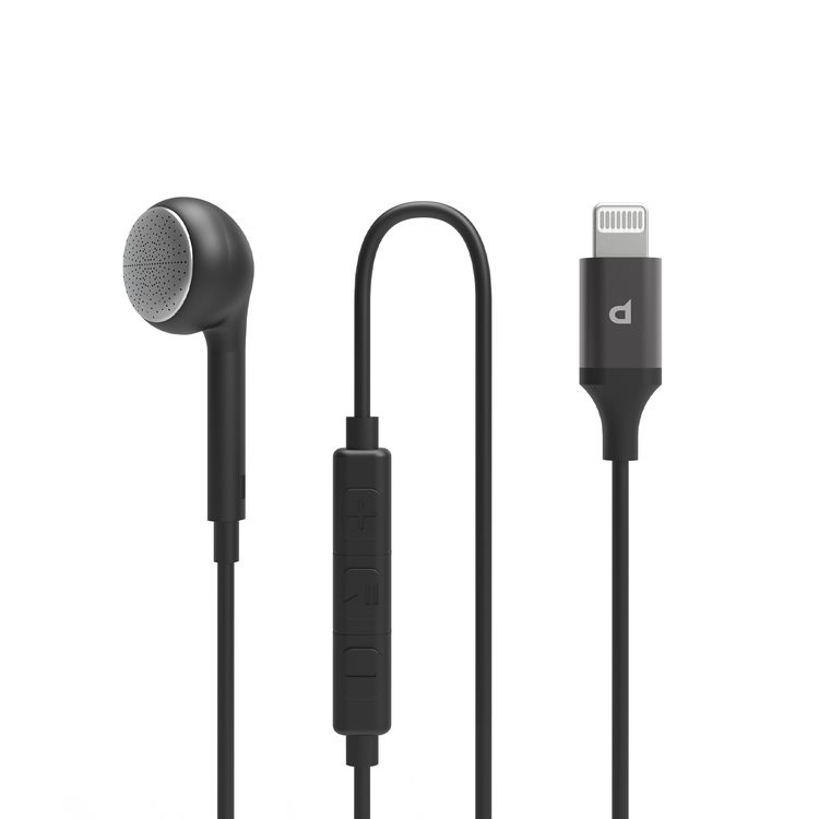 Powerology Mono Earphone with Lightning Connector, Active in-Line Control Buttons, HD Sound, 1.2m Cable Length, 3mW Maximum Power - Black