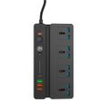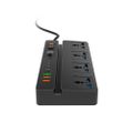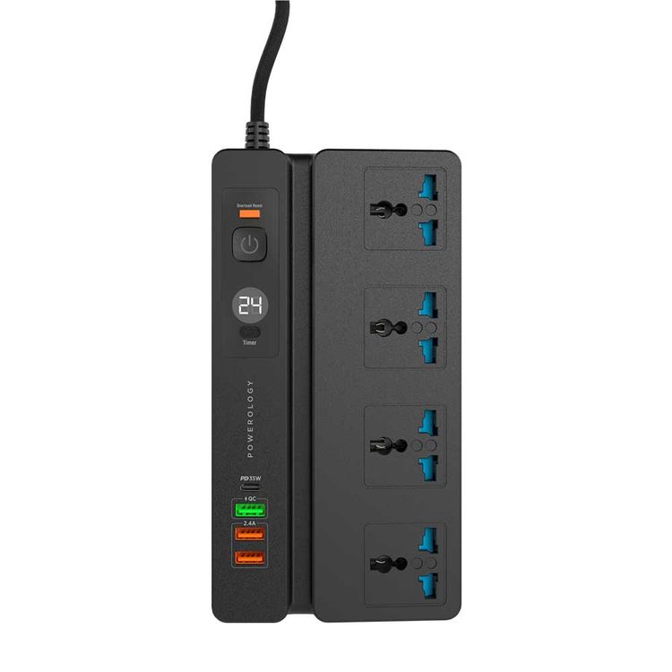 Powerology Universal Socket 4 AC 3 USB Ports & USB-C PD 35W Multiport Socket with Phone Stand and Timer, Fire-Proof Protection (Black)