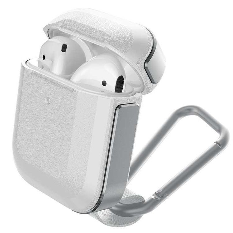 X-Doria Defense Trek Aluminum Bumper Case with Anti-Lost Carabiner & Loop Compatible for AirPods 1 & 2 - Sleek Design Cover - 360 Degree Protection - Charging Light Visible - Silver