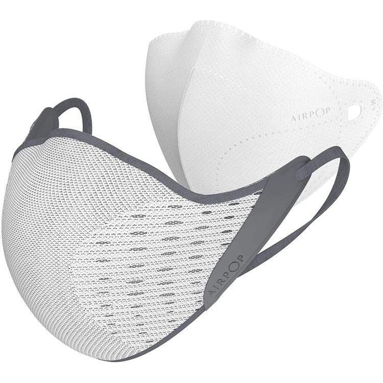 AIRPOP Active Reusable Face Mask, 5-Layer Filter Face Coverings for Sports, Contoured Fit, Folding Adjustable Face Mask, Adult Face Masks for Pollutant Protection - White/Grey