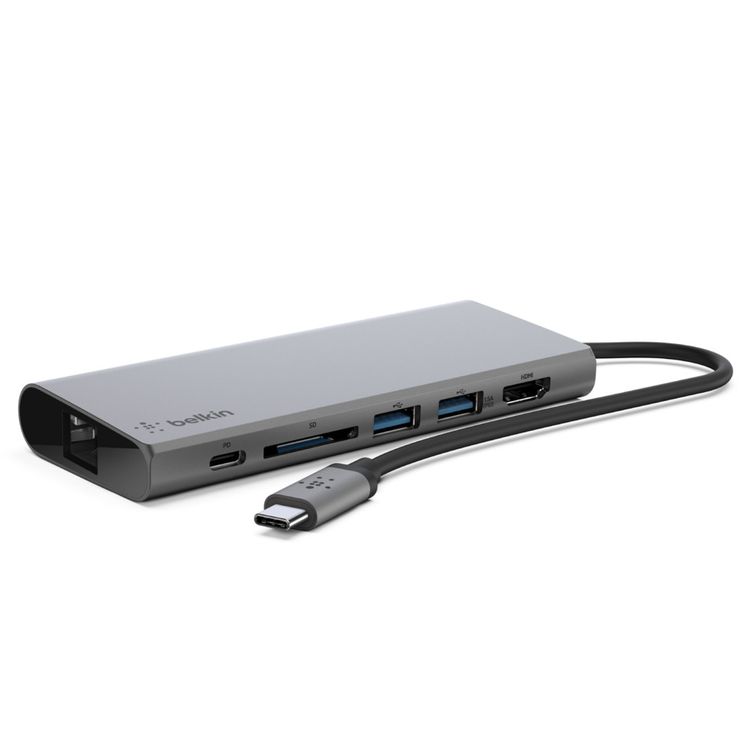 Connect multiple devices to a USB-C laptop through a single cable. The USB-C Multimedia Hub offers USB-A, USB-C, HDMI™ (supporting 4K 30Hz monitors), ethernet and SD card ports, to connect your laptop easily and safely to all kinds of peripherals and devices, including projectors, monitors, SD cards, thumb drives, internet and more.