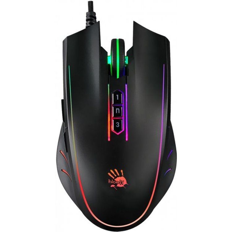 Bloody P81s Activated Starlight USB RGB Light Strike Gaming Mouse, BC3332-S Gaming Engine, 6 Sniper Modes, Adjustable X/Y Axis, 2000 Hz Report Rate - Black