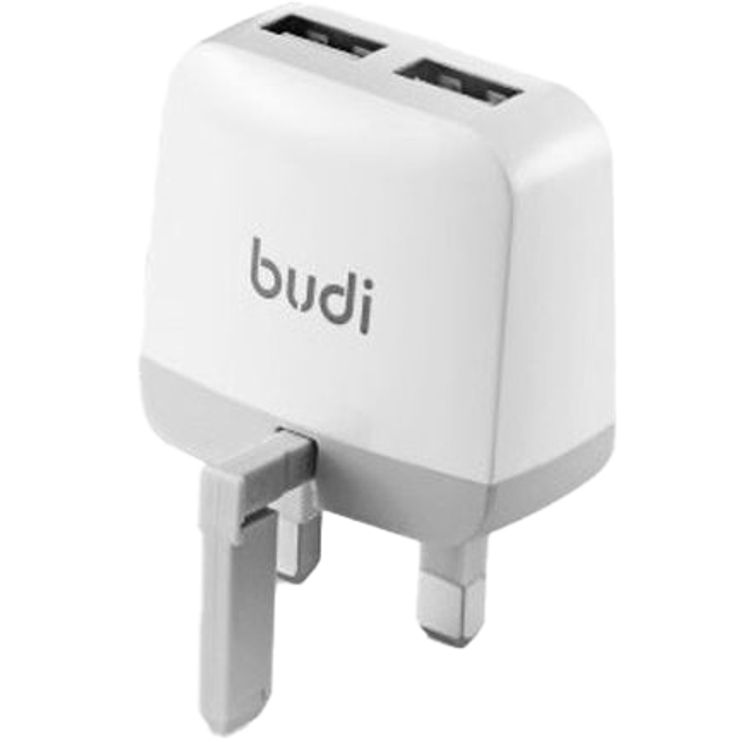 Budi M8J940U Home Charger 12W De Maison Home Charger, UK Plug, 12 WATT, Flexible, 2 USB Ports, - White/Grey
