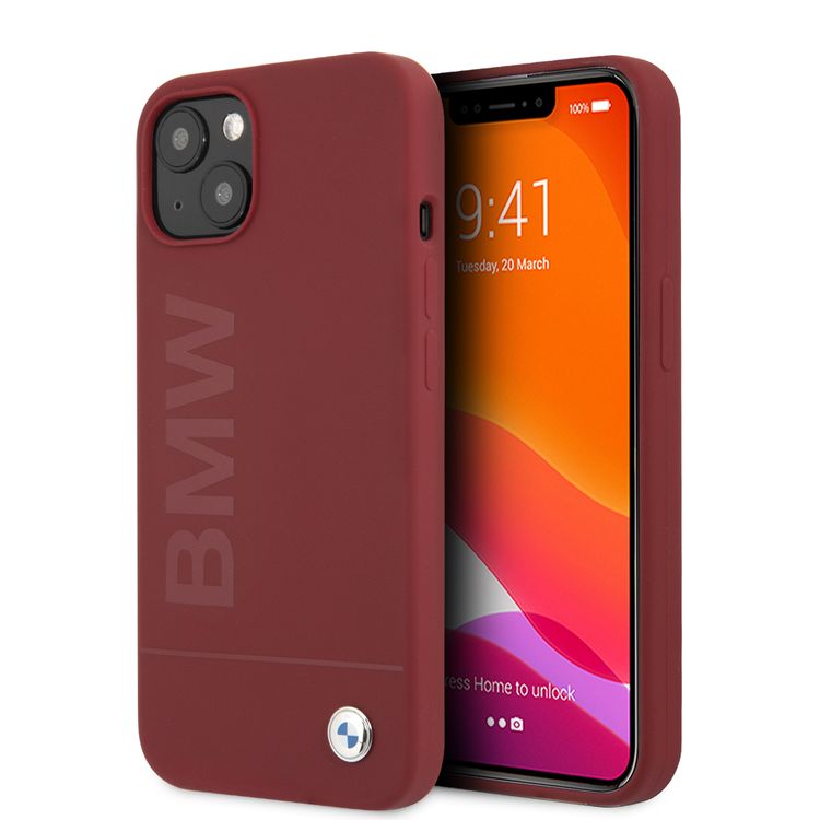 CG MOBILE BMW Liquid Silicone Case Tone On Tone Metal Logo Compatible for iPhone 13 (6.1") Easy Access to All Ports, Anti-Scratch - Red