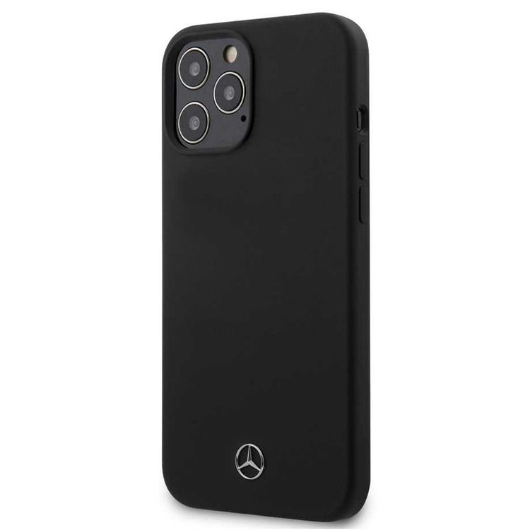CG Mobile Mercedes-Benz Liquid Silicone Case with Microfiber Lining Compatible for iPhone 12 Pro Max (6.7") Shock-Absorption, Anti-Scratch, Drop Resistant, Easy Access To All Ports, Protective Back Cover Suitable for Wireless Charger Officially Licensed - Space Gray