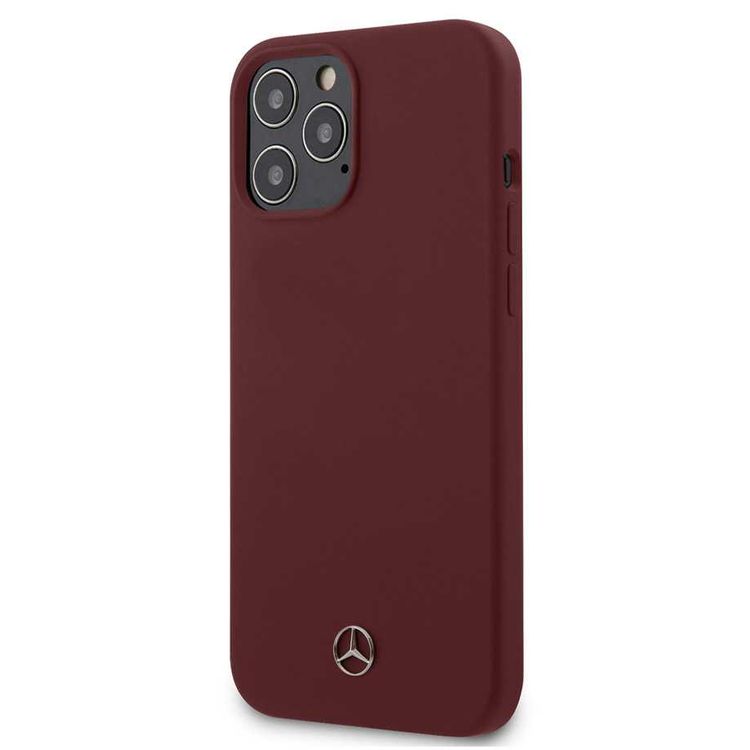 CG Mobile Mercedes-Benz Liquid Silicone Case with Microfiber Lining Compatible for iPhone 12 / 12 Pro (6.1") Shock-Absorption, Anti-Scratch, Drop Resistant - Red