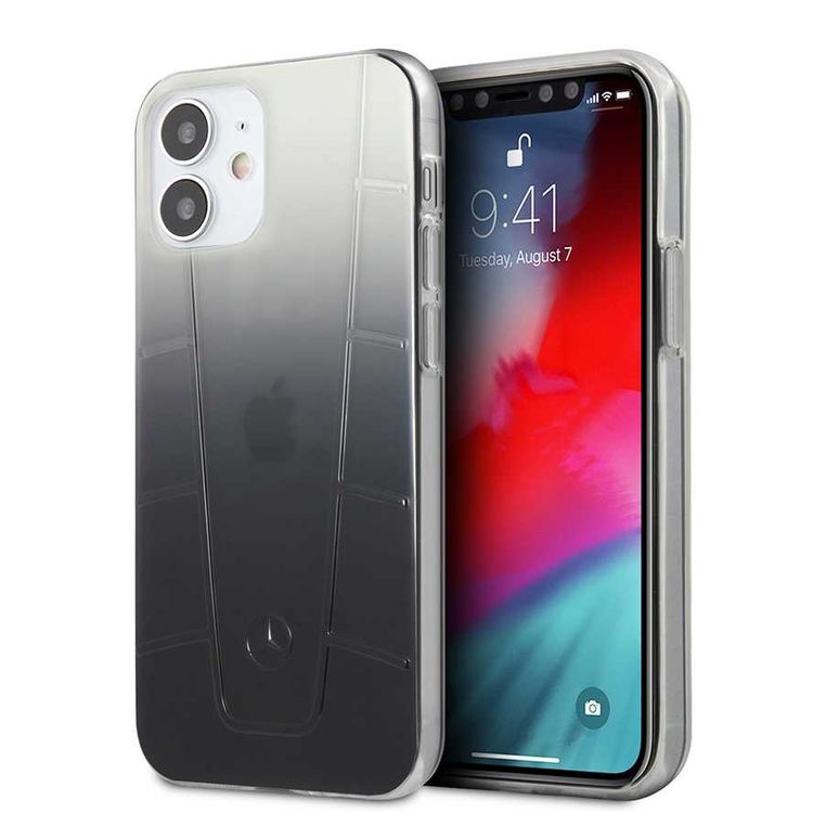 CG MOBILE Mercedes-Benz Transparent Phone Case Embossed 2 Compatible for iPhone 12 Mini (5.4 ) Officially Licensed - Black Gradient