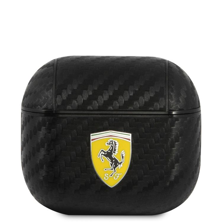 Ferrari PC PU Carbon Yellow Shield Metal Logo Case for Airpods 3 - Black