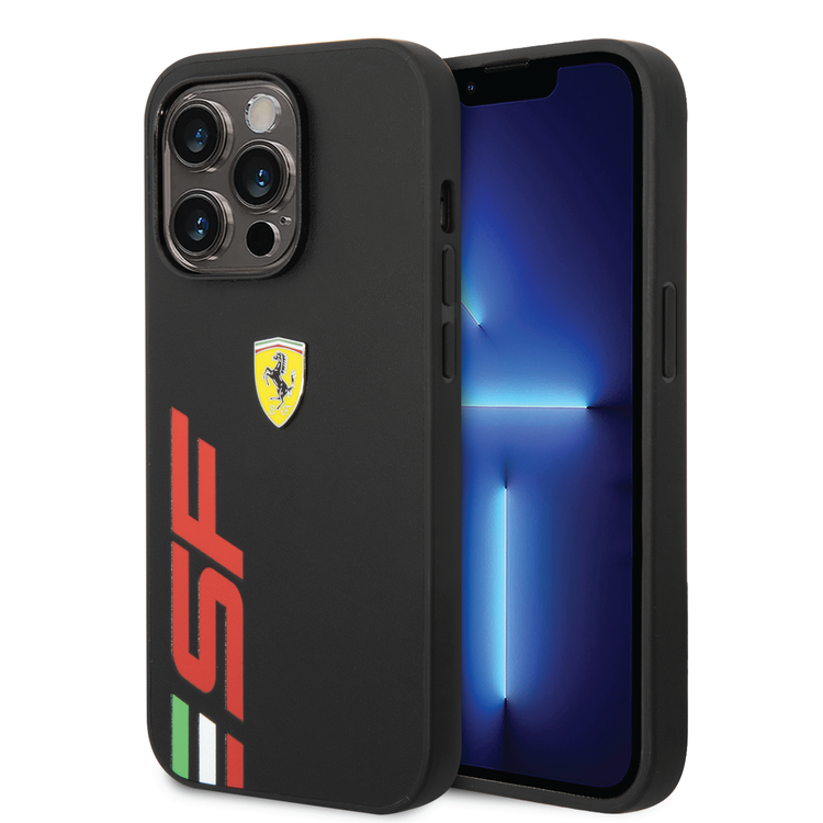Ferrari PU Leather Case with Printed Big SF Logo iPhone 14 Pro Max Compatibility - Black