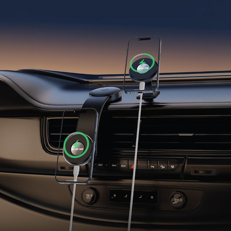 Green Lion 2in1 Magflex Wireless Car Charger, Fast Charge, MagSafe Compatible, Strong 3M Glue, Easy Installation, Power Delivery Up to 15W, Type-C Connector Port, 360° Rotation - Black
