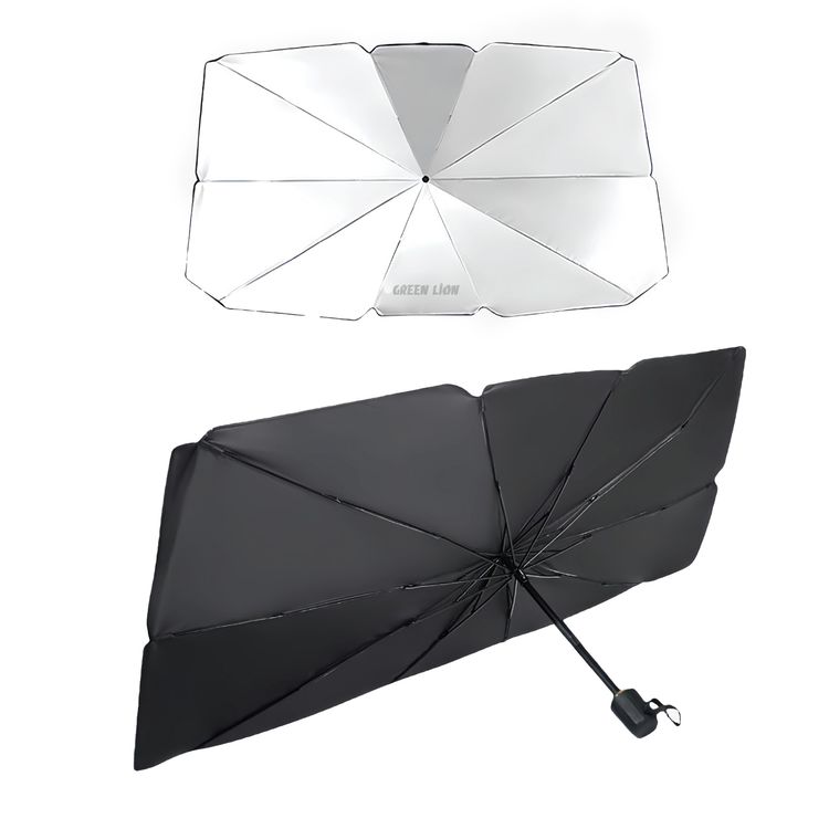 Green Lion Car Windshield Sunshade Umbrella with UV Protection, Light, Compact & Retractable, Sunlight Reflector, Structure Support, Comfortable to Handle, Easy to Use - Black