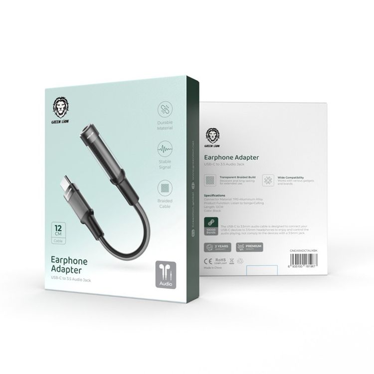 Green Lion Earphone Adapter USB-C to 3.5 Audio Jack (12cm) - Black
