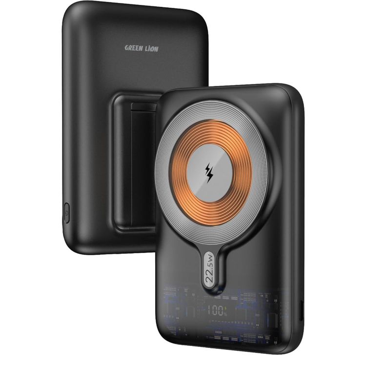 Green Lion Lucid MagSafe 10000mAh Power Bank, Digital Display, PD 20W Fast Charge, Strong Magnets, 15W Wireless Charging, USB-C & USB-A Output, Lightning Port, Compact & Portable - Black