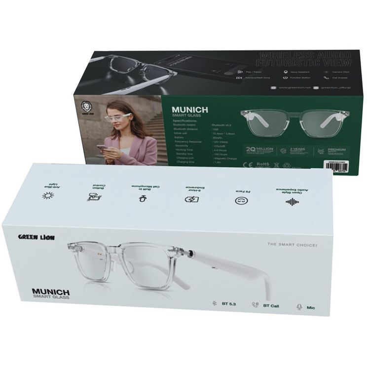 Green Lion Munich Smart Glasses with Bluetooth 5.3, 4-6 Hours Working Time, Built-in Call Microphone, Anti-Blue Light, Button Control, 15m Bluetooth Distance, 180 Hours Standby Time