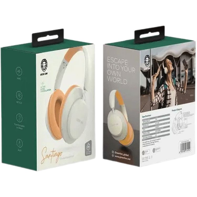 Green Lion Santiago Wireless Headphones, 300mAh Battery Capacity, 24 Hours Play Time, 2.5 Hours Charging Time, 10m Transmission Distance, Built-in Microphone - Beige