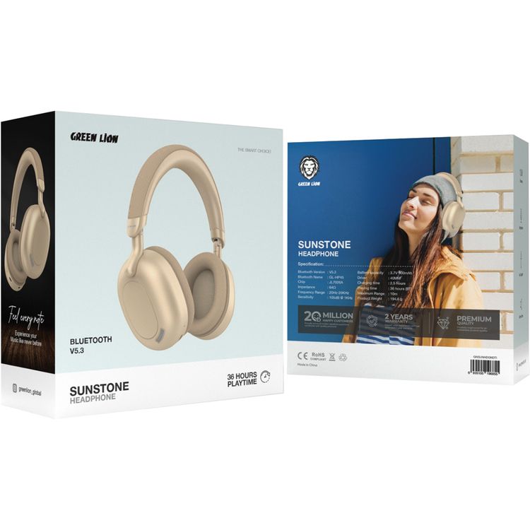 Green Lion Sunstone Wireless Headphones with 36 Hours Playtime, Bluetooth V5.3, 10m Maximum Distance Range, 300mAh Battery Capacity - Desert Titanium