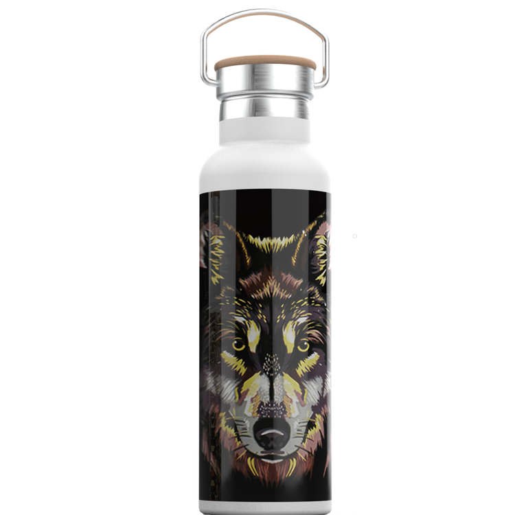 Green Lion Pattern Stainless Steel Portable Water Bottle 600ml/21oz with Handle