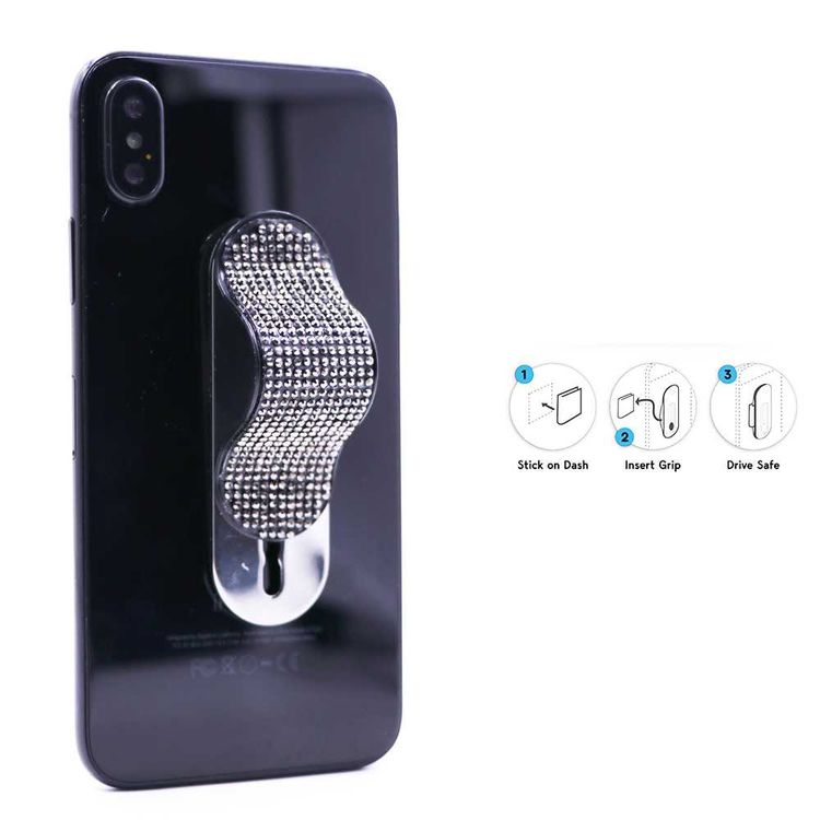 Gripon GP-SSC-BK Finger Phone Strap with x2 Mounting Clips mobile phone holder enhances your grip on your smart device - Black Diamond / Silver