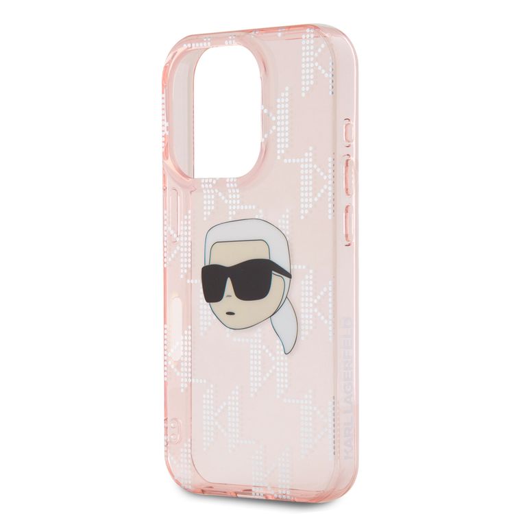 Karl Lagerfeld IML Hard Case for iPhone 16 Pro Max with Electroplated Karl Head & Monogram Design, Comfortable Grip, Slim Profile, Drop Protection, Sustainable Packing - Pink