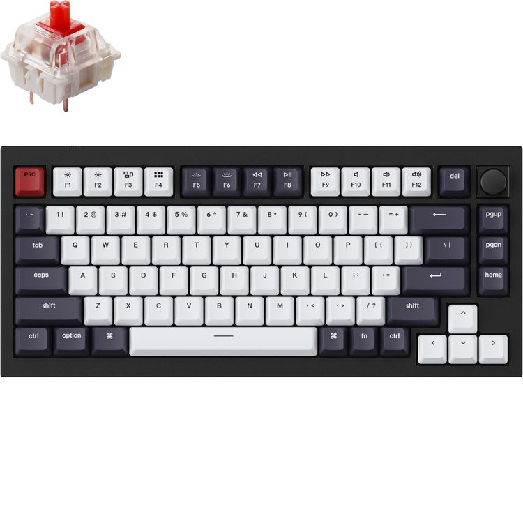 Keychron Q1 QMK Gateron Phantom Mechanical Keyboard with Knob, RGB, Red Switch & Custom Hot-swappable | Ergonomic Design Gaming Keyboard - Carbon Black