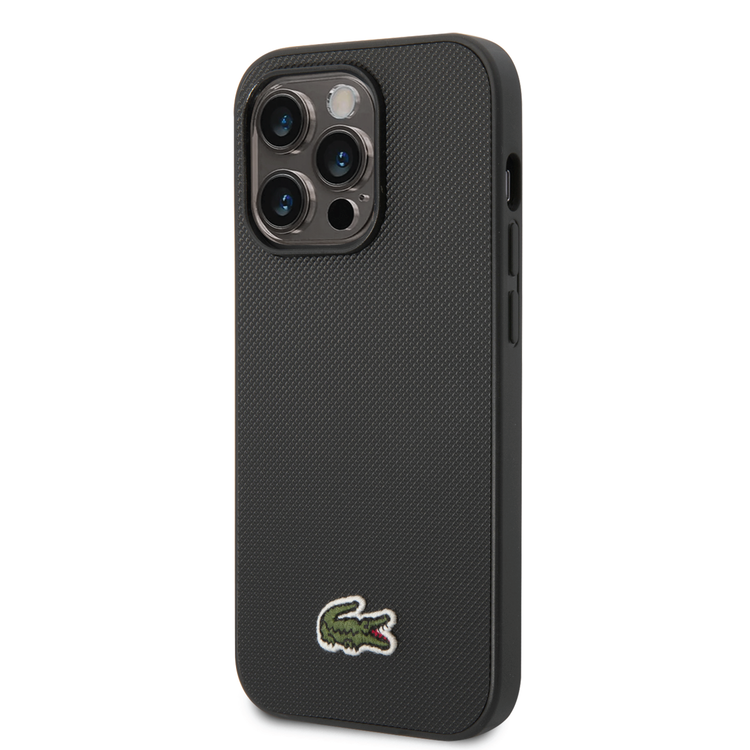 Lacoste Hard Case Iconic Petit Pique PU Woven Logo Estragon Compatible with iPhone 14 Pro Max - Black