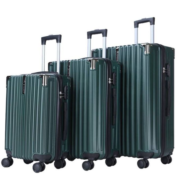 Levelo 3-Set ABS Luggage with Built-in Weighing Scale, Combination Lock, Iron Trolley, Double Wheels, Impact-Resistant Corners & Shock-Resistant, PP & Soft Rubber Handle - Forest Green