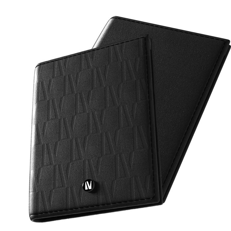 Levelo Bifold Black Genuine Leather Pocket Organizer with Debossed Logo, 8 Slots, Genuine Leather, Medium - Black