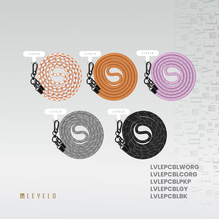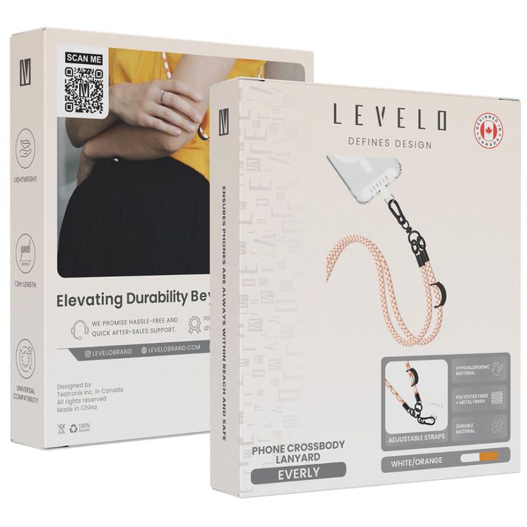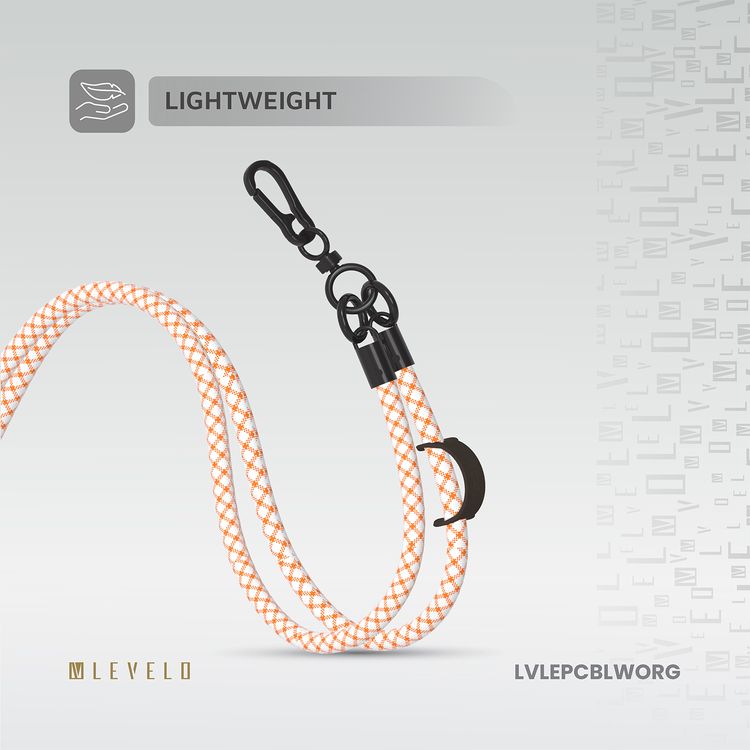 Levelo Everly Phone Crossbody Lanyard, 1.2m, Polyester Fiber, Metal Finish, Lightweight, Durable Material, Adjustable Straps, Universal Compatibility, Hypoallergenic Material - Orange / White