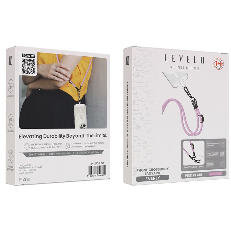 Levelo Everly Phone Crossbody Lanyard, Lightweight Design, Adjustable Straps with 1.2m Length, Hypoallergenic Material, Universal Compatibility - Pink pearl