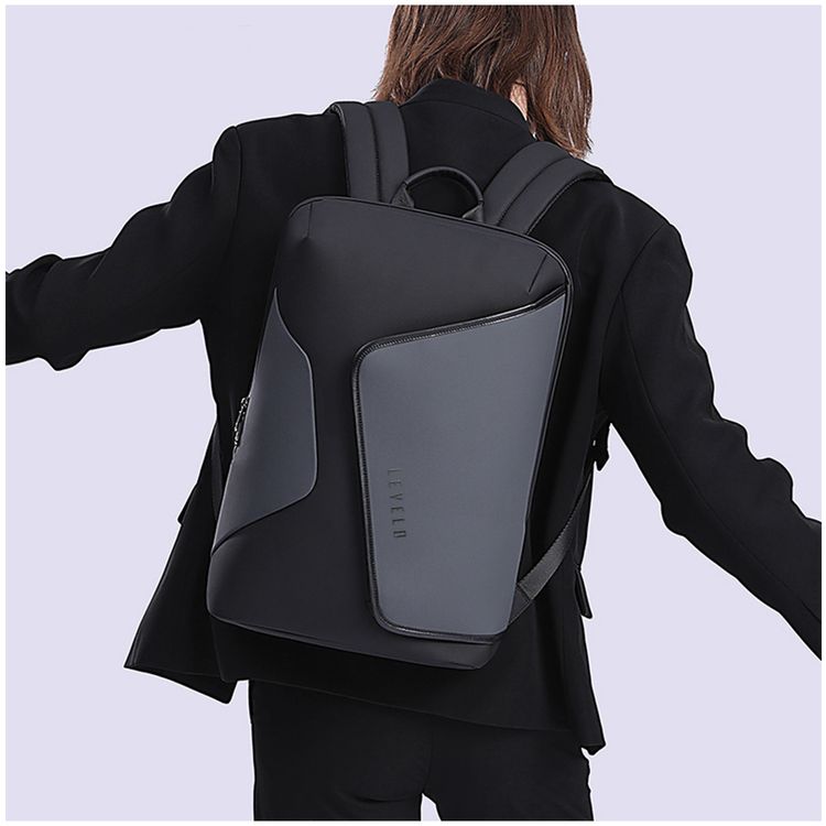 Levelo Lisbon Carrying Laptop & Universal 15.6” Backpack with Water Resistance Polyester, Laptop Compartment, Durable Material, Strap Pocket - Black / Gray