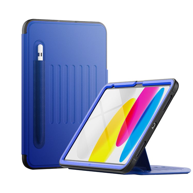 Levelo Luxora Case for iPad 10.2" (2019-2021), Adjustable Multi-Angle Viewing, Premium PU Leather Finish, Shockproof, Anti-Fingerprint, Built-in Pen Holder & Built-in 2 Card Slots, Magnetic Flap Closure - Blue