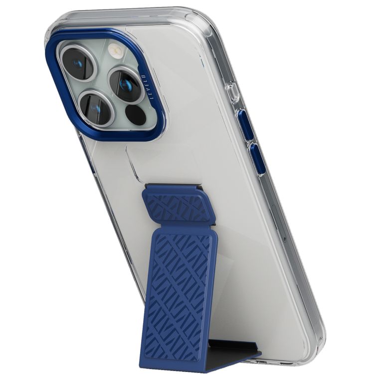 Levelo Morphix Clara Grip Case for iPhone 15 Pro, Premium Leather Kickstand Grip, Shock Proof Edges, 3H Anti Scratch, Reinforced Corners with Airguard, Multi Positioning Modes for Ultimate Protection and Convenience - Blue