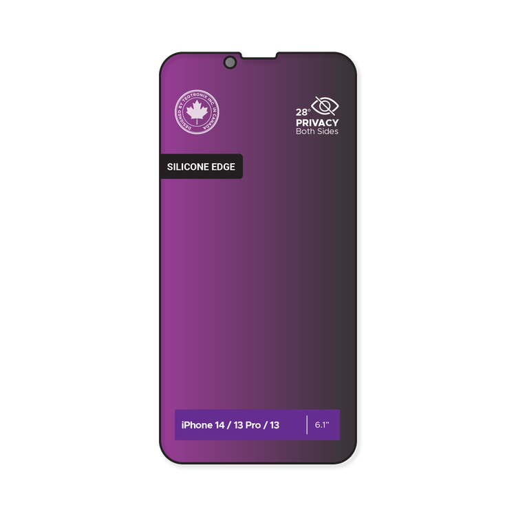 Levelo Privacy Tempered Screen Protector, Black-Edition Silicone Edge, iPhone 14 / 13 Pro / 13 Compatibility - Black