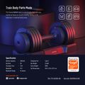 Porodo 55 lb Single Adjustable Smart Dumbbell - Black