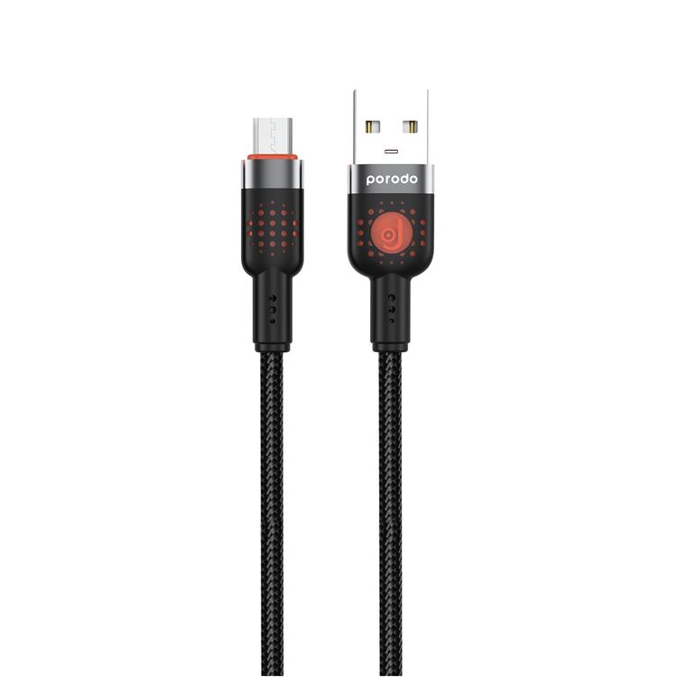 Porodo Braided USB-A to Micro USB Cable with 480Mbps Transfer Speed, 1.2m Cable Length, More than 15,000 Bends Lifespan, Tangle-Free Design - Black