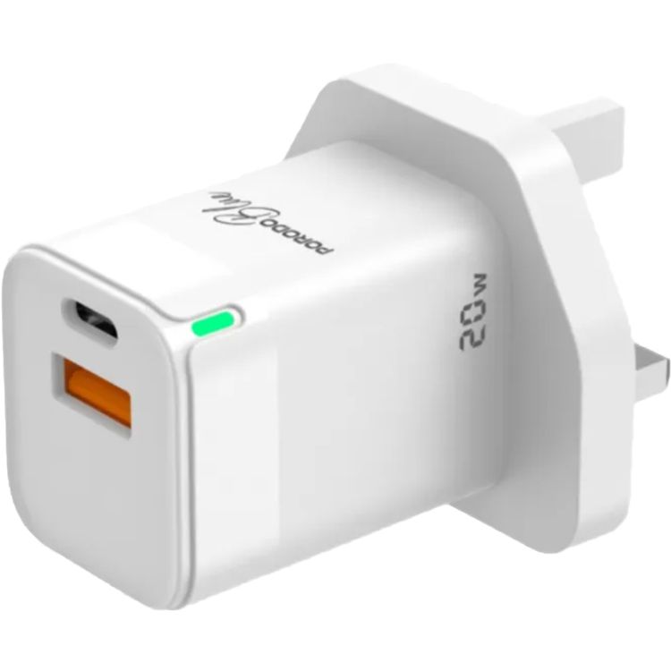 Porodo Blue Ultra-Quick Charger with 1M Type-C to Lightning Cable Included, USB-A & USB-C, 20 w, Output Current 3 A, Output Voltage 5 V, Multi Device Charging, Fast Charge Support