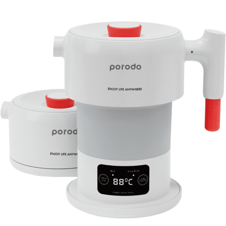 Porodo Lifestyle 850W Kettle with Digital Display and BS Plug 600ml, Ergonomic And Compact, Digital Display, Folding Design, High-Grade Stainless Steel & Silicone - White