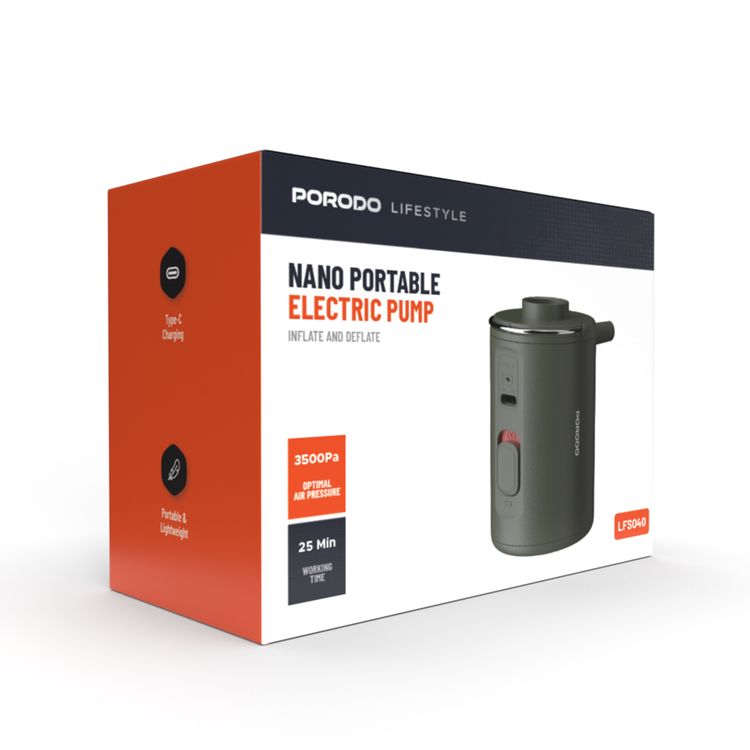 Porodo Lifestyle Camping Inflate and Deflate Air Pump, Type-C Charging Port, Portable & Lightweight, 800mAh Battery, 25 Minutes Working Time, 2 Hours Recharge Time - Green