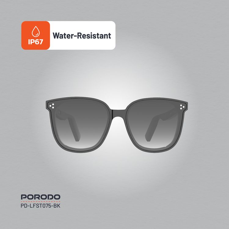 Porodo Lifestyle Polarized Sunglasses with Speaker, 160 Hours Standby Time, 2 Hours Charging Time, Bluetooth Version 5.3, Push-Button Controls, Multi-Coated Lens - Balck