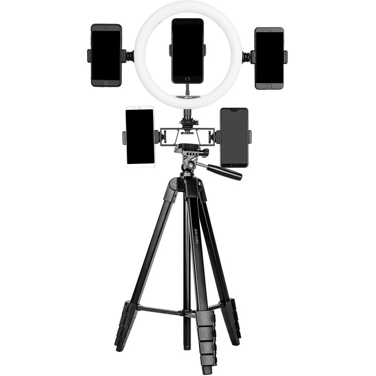 Porodo Professional Gimbal Tripod with Phone Mount, Broad Compatibility, Telescopic Design, Vertical Flip Knob, 1/4" Mount Screw, Up to 2kg Load Capacity, 171cm Length - Black
