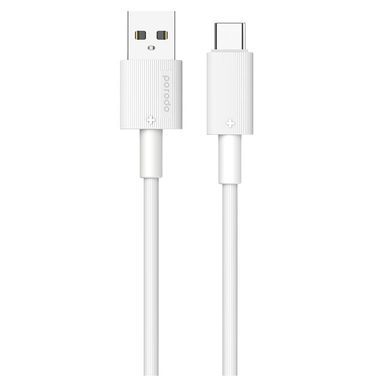 Porodo USB A to C PVC Cable, 480Mbps Transfer Speed, more than 15000 Bends Life Span, 1.2m Cable length, Tangle Free - White