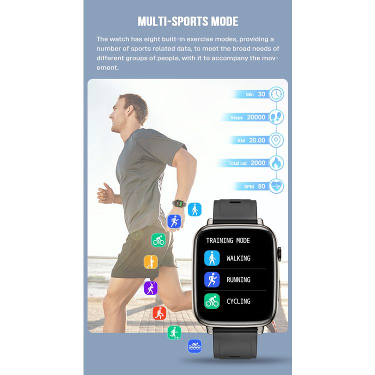 Porodo Verge Smart Watch Fitness & Health Tracking with Calls / Socials Notifications, 1.69" HD Touch Screen, Multi-Sport Modes, Sleep & Heart Rate Monitoring, Waterproof Features