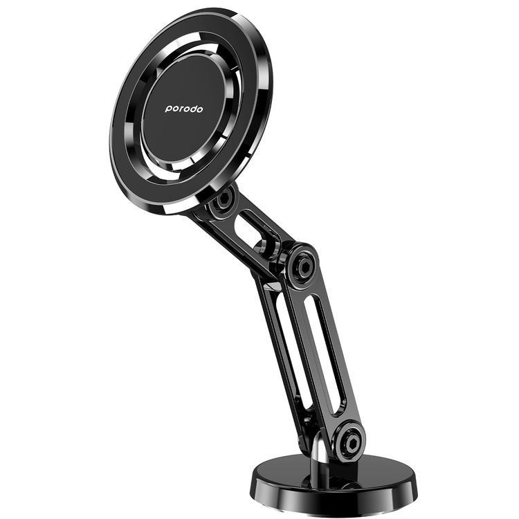 Porodo Zinc Alloy Phone Mount Multi-Joint & 360° Rotating Base, x42 Embedded N52 Magnets, Folding Design, One Hand Operation, 4500Gauss Magnetic Force - Black