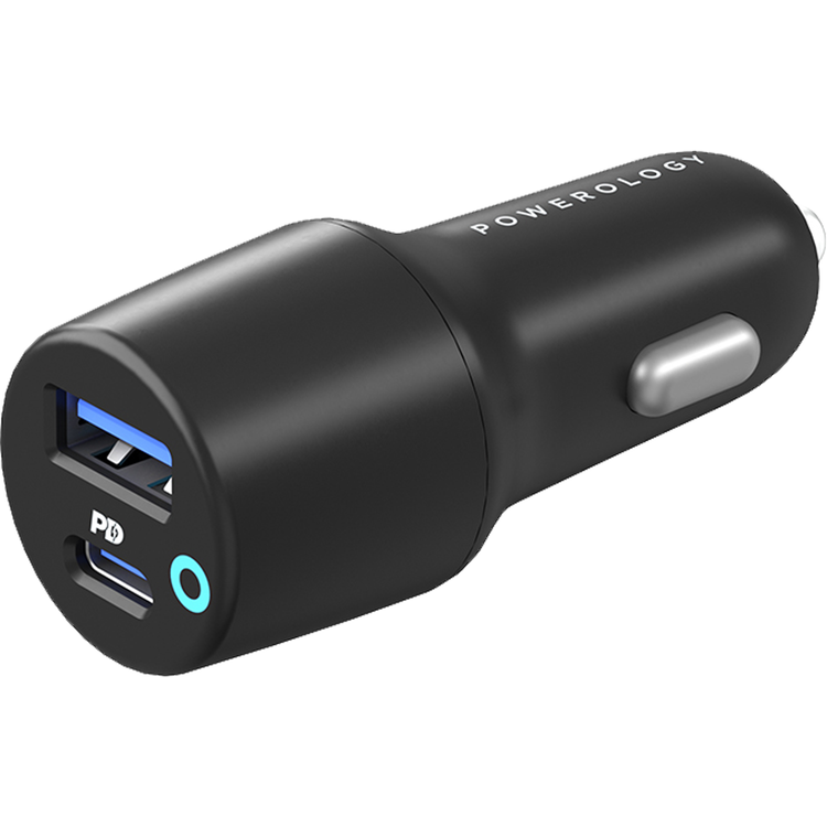 Powerology 53W Ultra-Quick Car Charger with Dual Output - Black