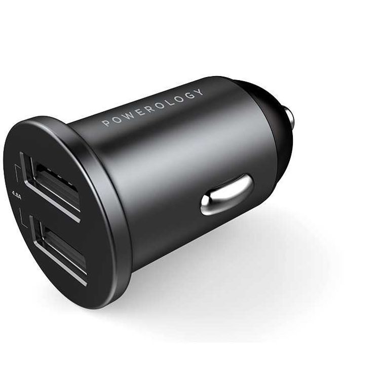 The Powerology mini car charger is designed for charging two devices simultaneously. The input and output voltage of the Powerology mini car charger are Input 12-24V, Output 5V/2.4A for both ports and the maximum output is 4.8A, 24W.